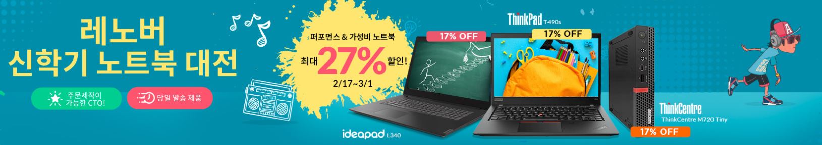 레노버 노트북 신학기 대전에서는 노트북을 최대 27%, 데스크탑은 최대 17%