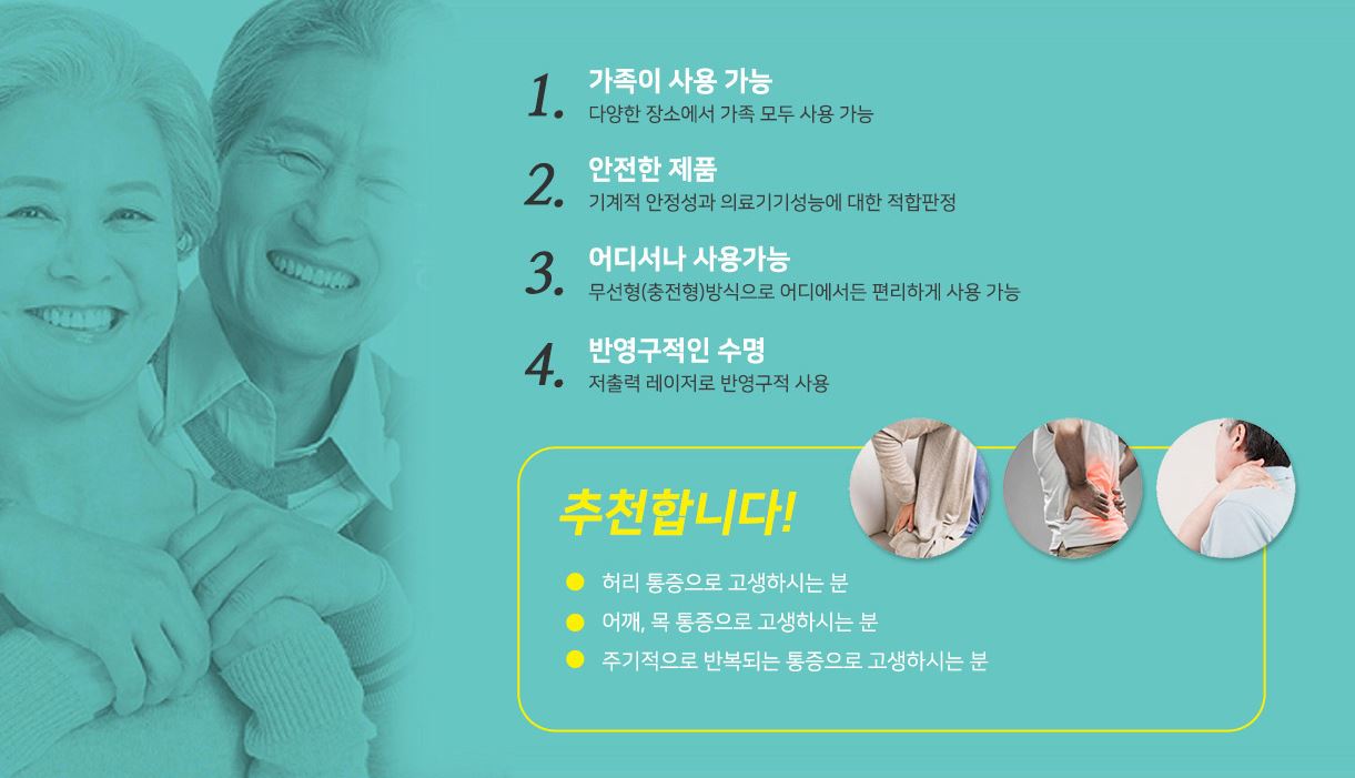 하루 20분이면 통증완화를 해주는 의료용 레이저 조사기에요.