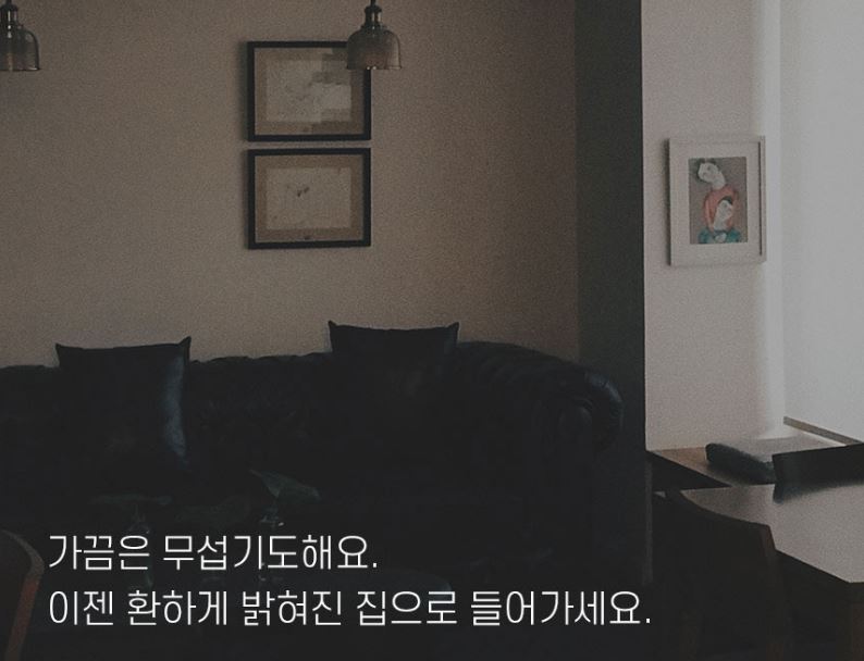 어두컴컴한 집으로 들어갈때, 많이 쓸쓸하기도해요.