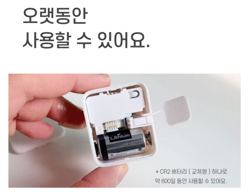 CR2배터리 하나로 약 600일동안 사용할 수 있어요.