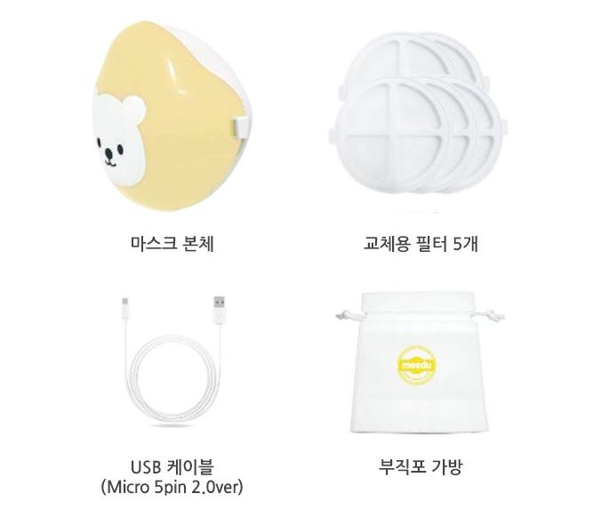 스마트 마스크 아기곰애키의 구성품이에요.