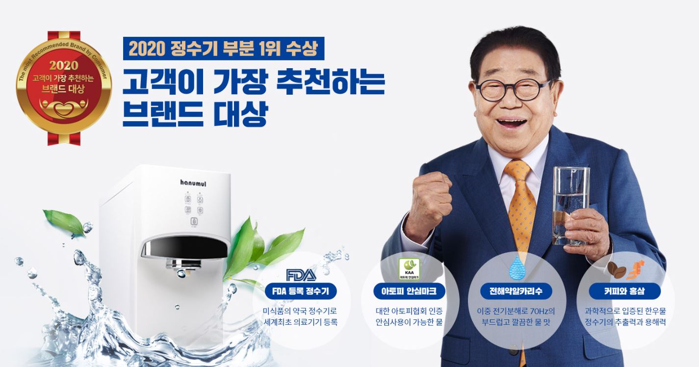 한우물정수기는 2020년 정수기부분 고객이 가장 추천하는