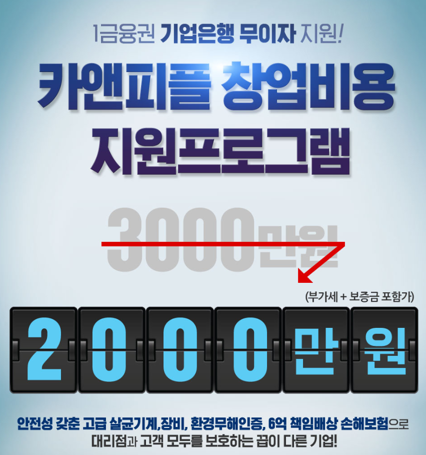 그 중에서 창업비용을 2000만원 지원해주는 출장스팀세차 카앤피플이 있어요.