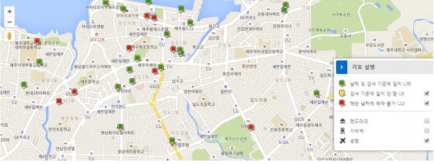 호텔의 위치를 확인할 수 있으며 줌인/아웃 하여 주변 관광지/교통/편의시설 등을 확인할 수 있습니다