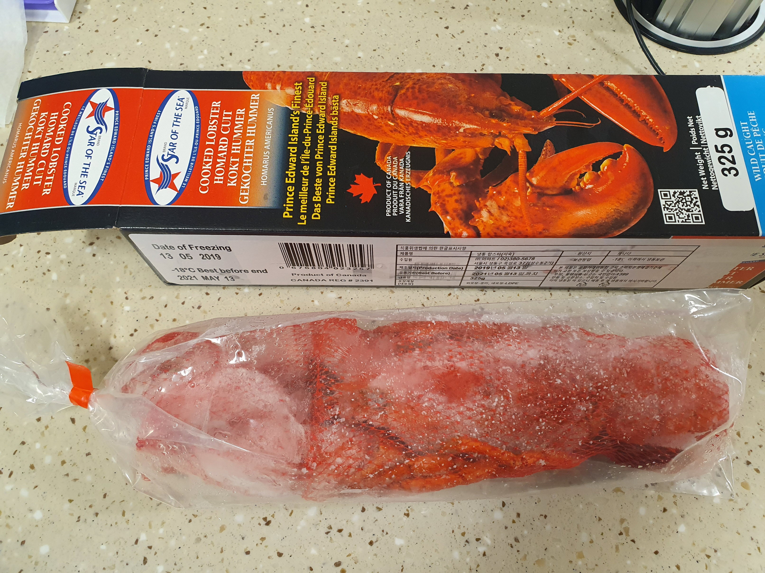꽁꽁 얼려있지만, 뜨거운 물에 해동하면 활 랍스터 보다는 아니만,
