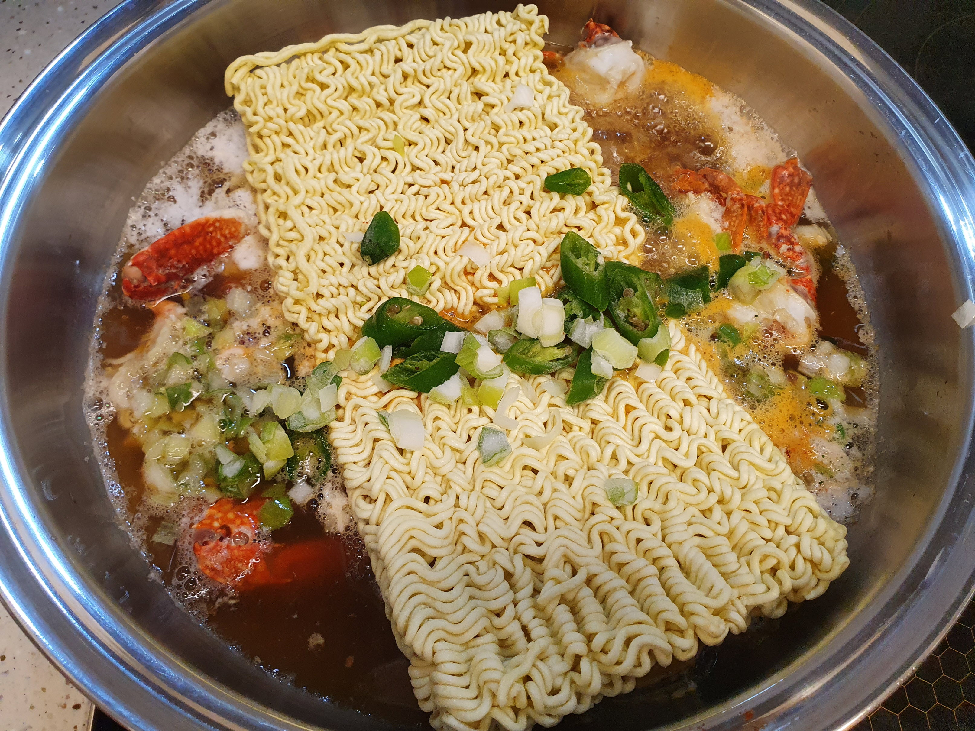 이제 꽃게 전복 라면입니다.