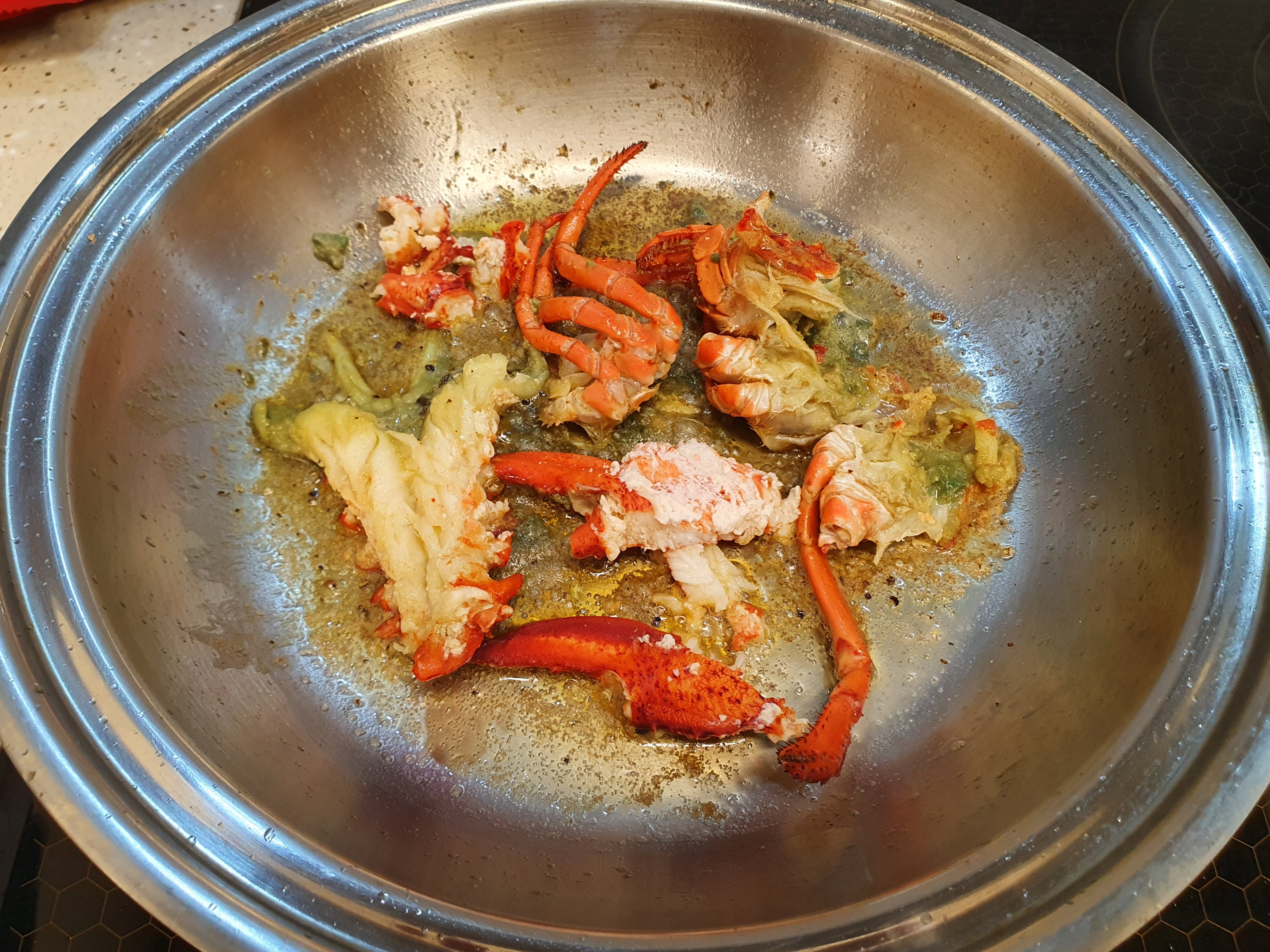 랍스터도 살을 분리해서 버터에 굽고 있어요.