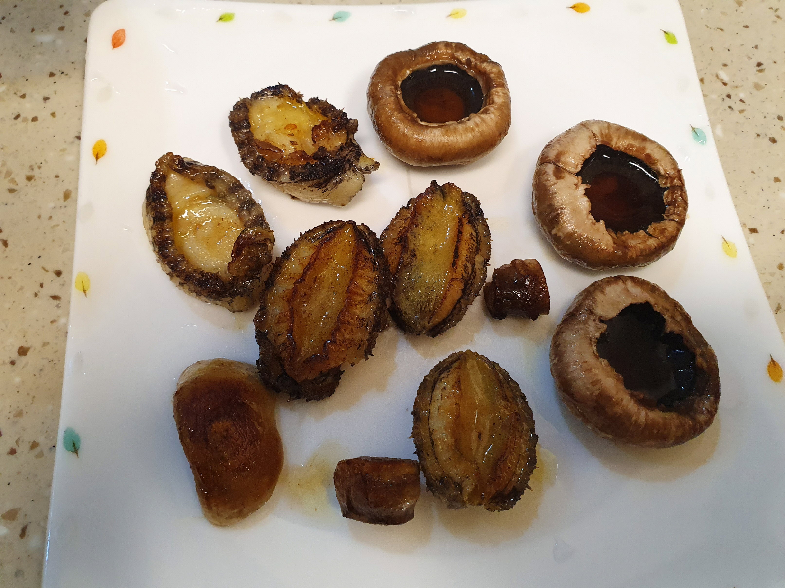 노릇노릇하게 잘 구워진 전복과 양송이 입니다.
