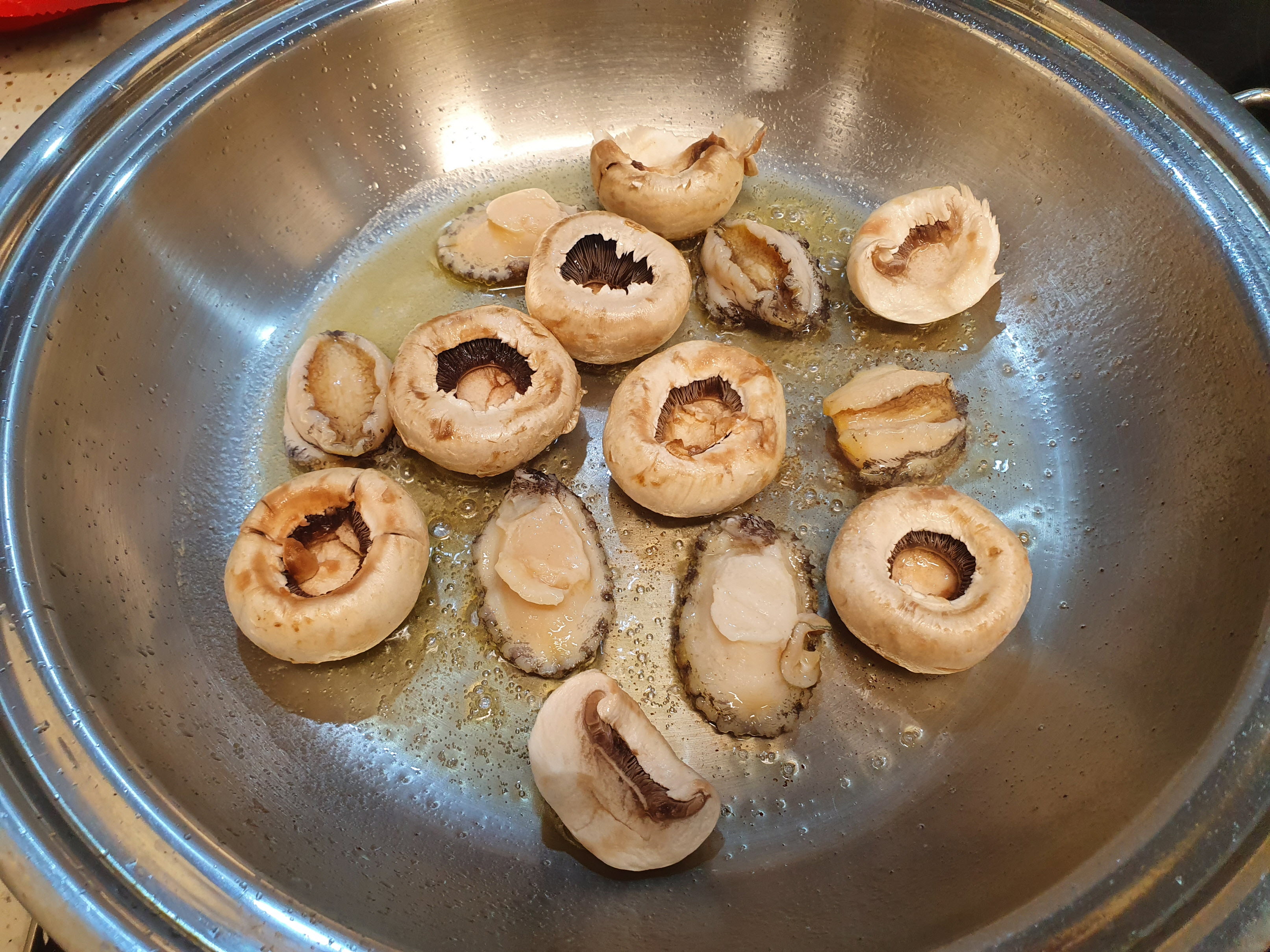 전복 보다 양송이가 더 많아요. 노린 것은 아니고, 전복을 하면에도 넣어야 하기때문에