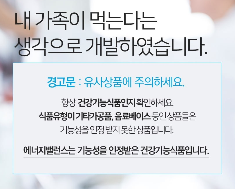 *에너지밸런스는 식약처의 기능성 인정과 특허 출원을 완료한 믿고 먹을 수 있는 건강기능식품입니다.
