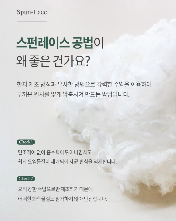 1. 면조직이 없어 흡수력이 뛰어나면서도