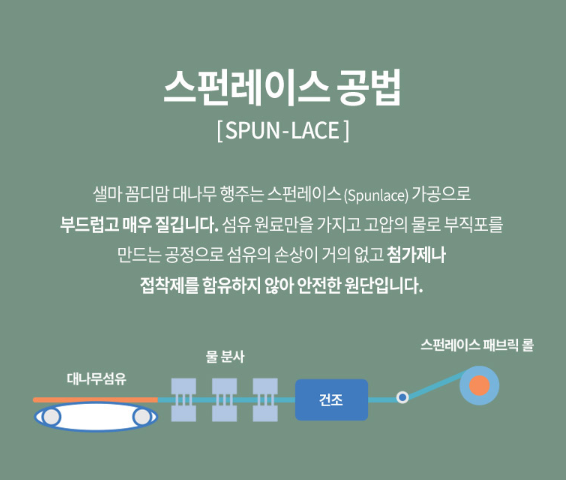 100% 대나무 추출섬유로 화학물질 없이 워터젯을 이용한 스펀레이스 가공