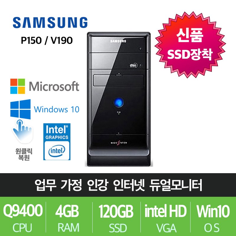#삼성전자 #업무용 #가정용 #게임용 #윈도우10 #데스크탑 #본체, #특가01. #Q9400/4G/SSD120+500/Win10, #특가01.P150 #데스크탑