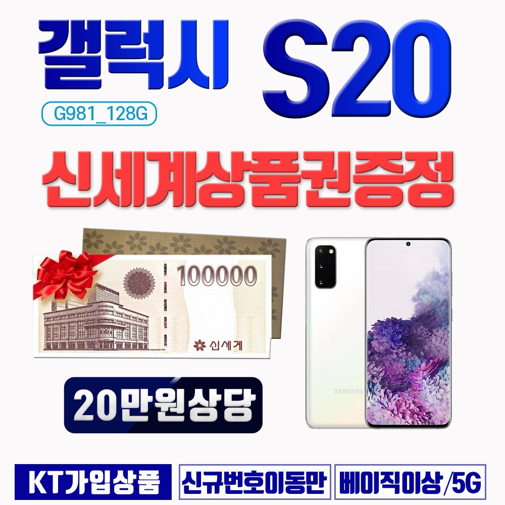 #갤럭시 #[당일배송]삼성 #S20 #G981_128GB #신세계상품권20만원증정 #KT직구몰, #색상선택연락요망(02-483-2010) #갤럭시S20