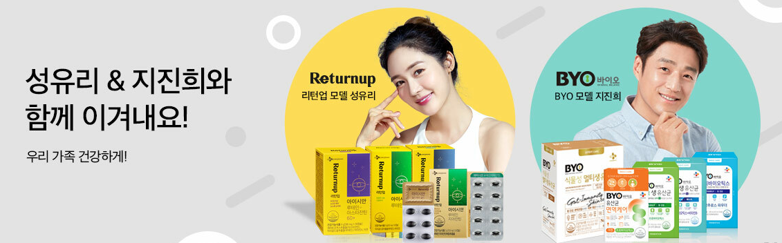 성유리씨와 지진희 씨를 모델로한 리턴업과 BYO를 가족건강을 위한 행사로