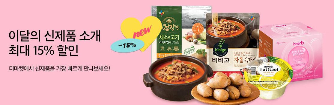 이달의 신제품을 최대 15% 할인하는 행사를 진행하고 있어요.