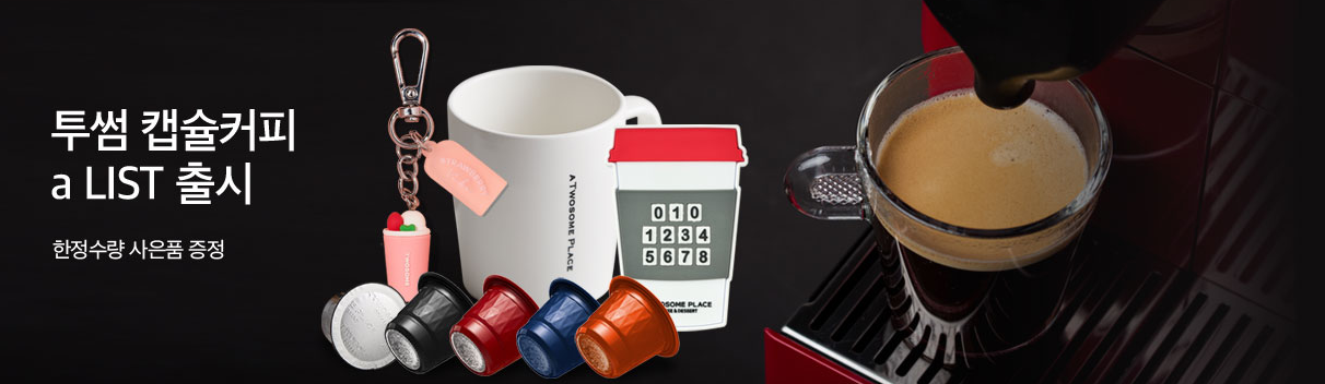 투썸 캡슐커피를 출시하면서 구매고객에게 투썸화이트머그, 투썸 주차알림판, 투썸 키링을
