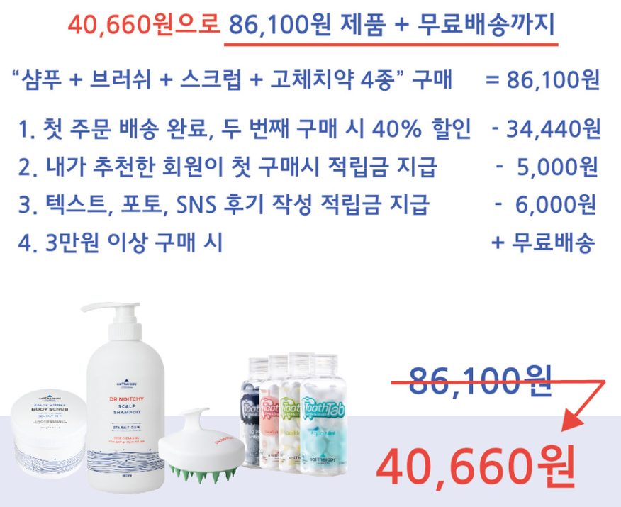 헤어, 바디, 구강케어 제품 4종 50% 할인 + 무료배송으로 받는 방법