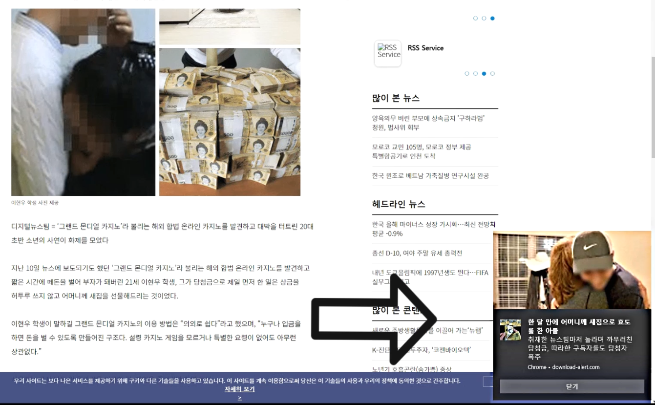 캡쳐된 화면에 있는 기사도 광고를 클릭해서 나온거에요.