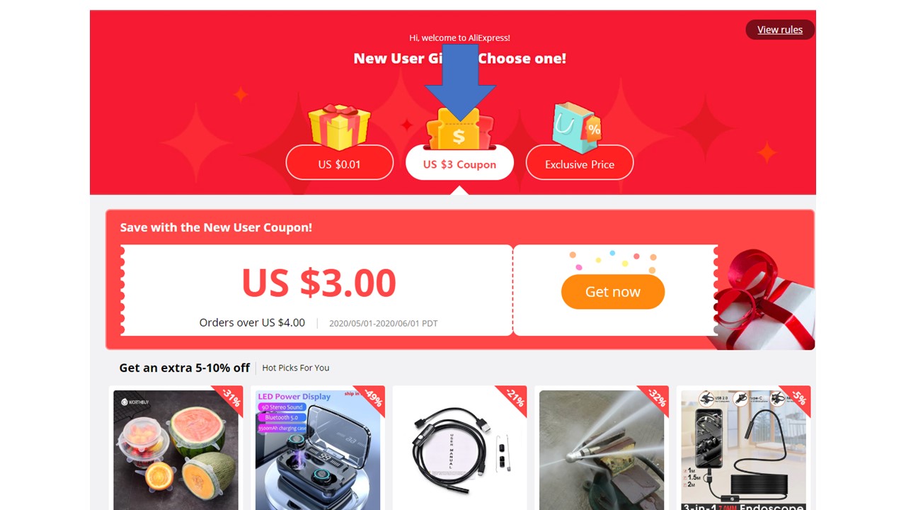 여기서 하얀색 버튼인 Get coupons now를 클릭하시면 3달러 쿠폰을 받으실 수가 있어요.