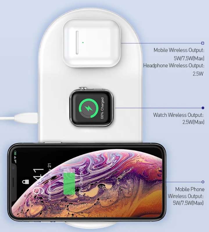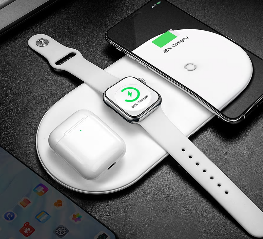 3가지의 다른 모바일 장치를 충전할 수 있는 패드에요.