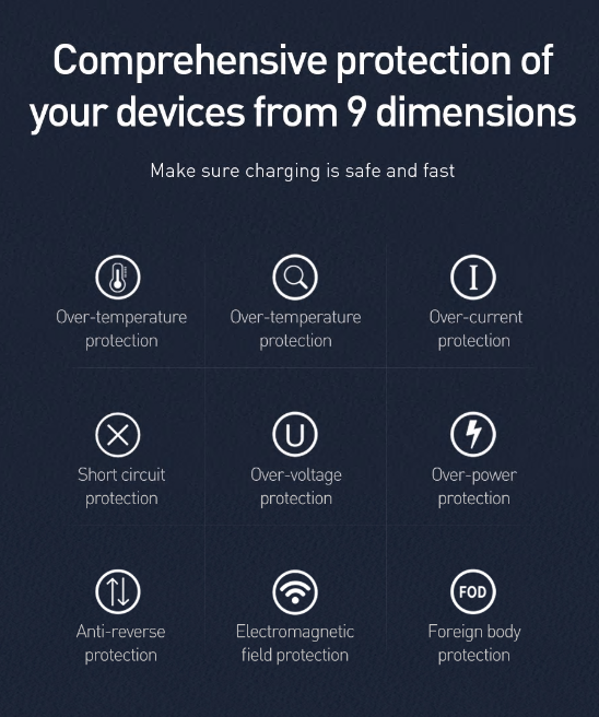 9가지 보호 기능으로 안전하고 빠른 충전을 지원하고 있어요.