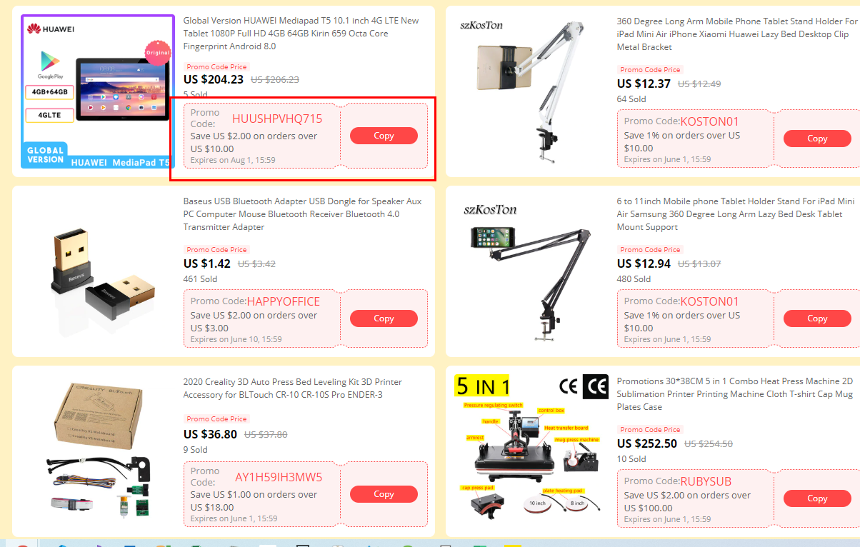 알리익스프레스 할인코드는 카테고리마다, 상품마다 프로모션 코드가 다르기 때문에