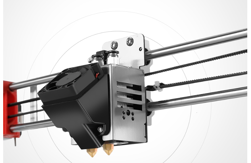 A: We named the dual extruder 3d printer as xxxxR2 and the dual extruder mixing color 3d printer as xxxxM2. Mixing color hotend can not only print two/three color, it can be used to mixing the two/three filament to the color what you want. But we don't suggest you mixing two type of filament.