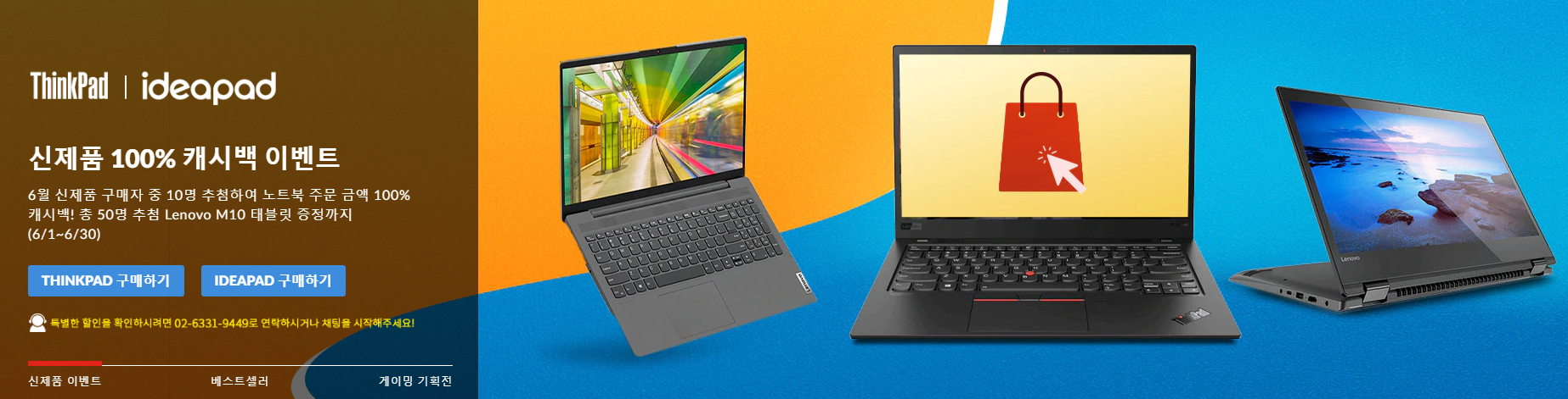 100% 캐쉬백 이벤트 행사는 ThinkPad 씽크패드, Ideapad 아이디어 패드에 해당되는