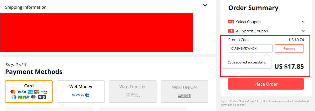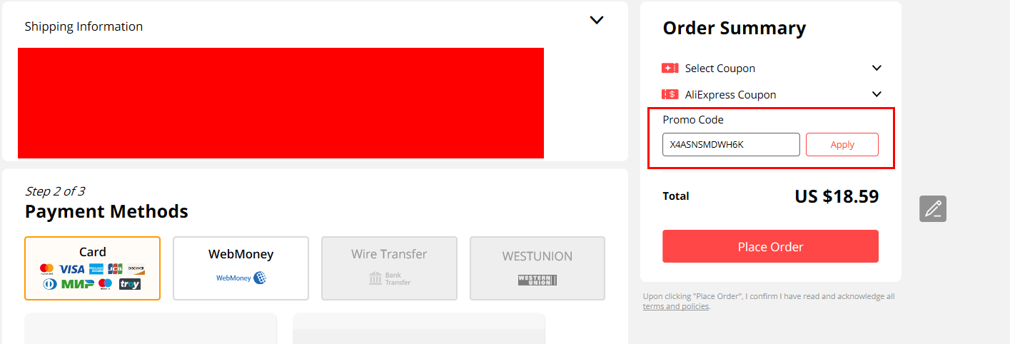 주문창에서 오른쪽에 Promo Code라고 되어 있는 곳에
