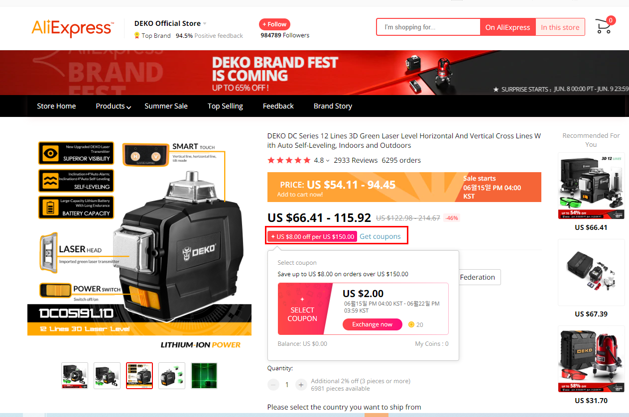 알리익스프레스에서 DEKO 제품에 대한 할인을 하면서 프로모션 코드 쿠폰을 같이 배포를 했어요.
