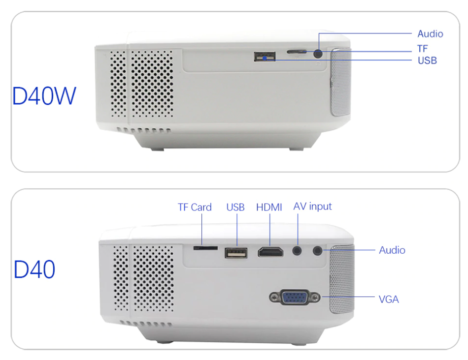 TF card to the projector to play local videos or photos.(Do not recommend to display word or excel)