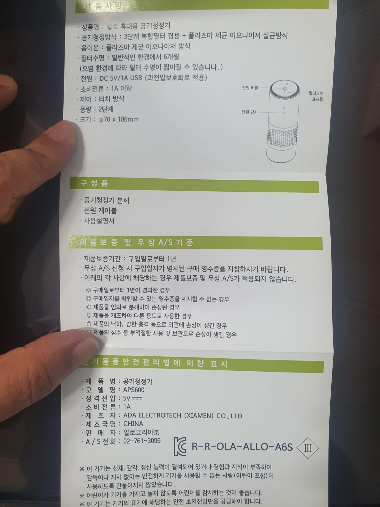 그럼 이상으로 알로코리아 공기청정기 A6S 헤파필터 H13 차량용 가정용 소형 휴대용 아이방 원룸 미니 사무실 공청기 간단 후기 리뷰 개봉기 포스팅을 마치겠습니다.