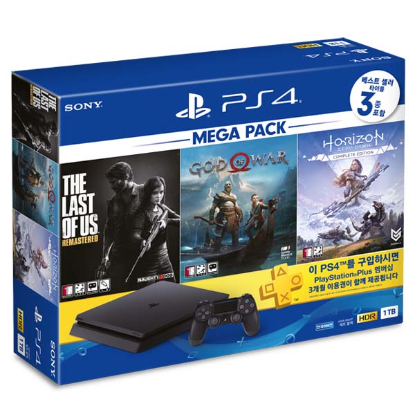 할인정보 소니 본체 슬림 2218B 1TB MEGA 패키지 게임 3종 + PSN3 PS4, 블랙