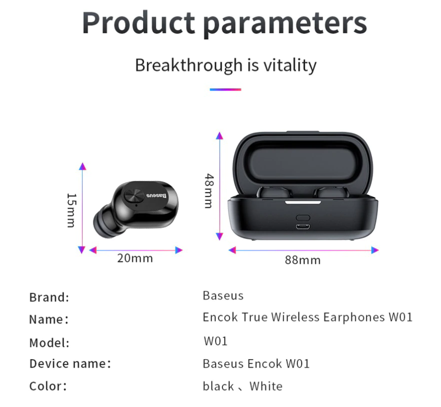 Name: Baseus Real Smart TWS W01 Bluetooth Wireless Earphone