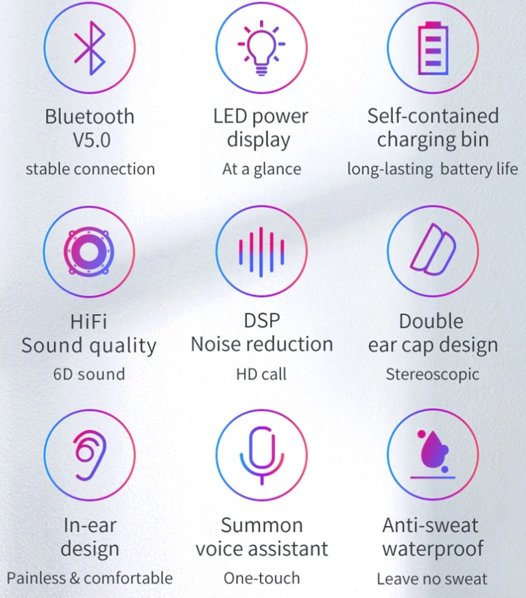 - Support bluetooth V5.0, Low power consumption, Call stabilit, Movie continuous sound