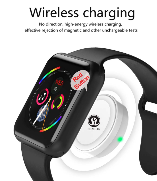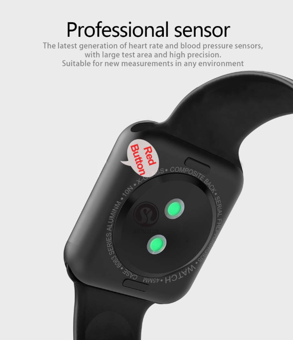 Smart Watch Series 4 SmartWatch case for apple 5 6 7 iPhone Android Smart phone heart rate monitor pedometor (Red Button)