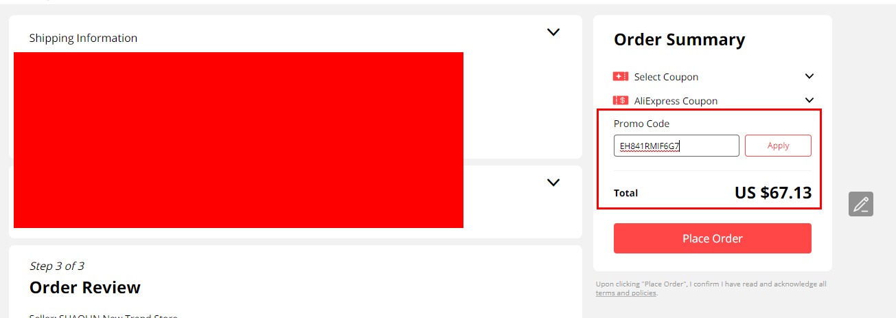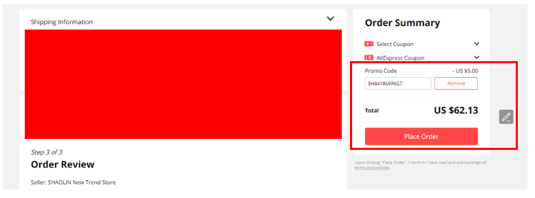알리를 자주 사용하신 분들은 결제 페이지 Promo Code 칸에 SZ2UMVUL 를 입력하셔도 되요.