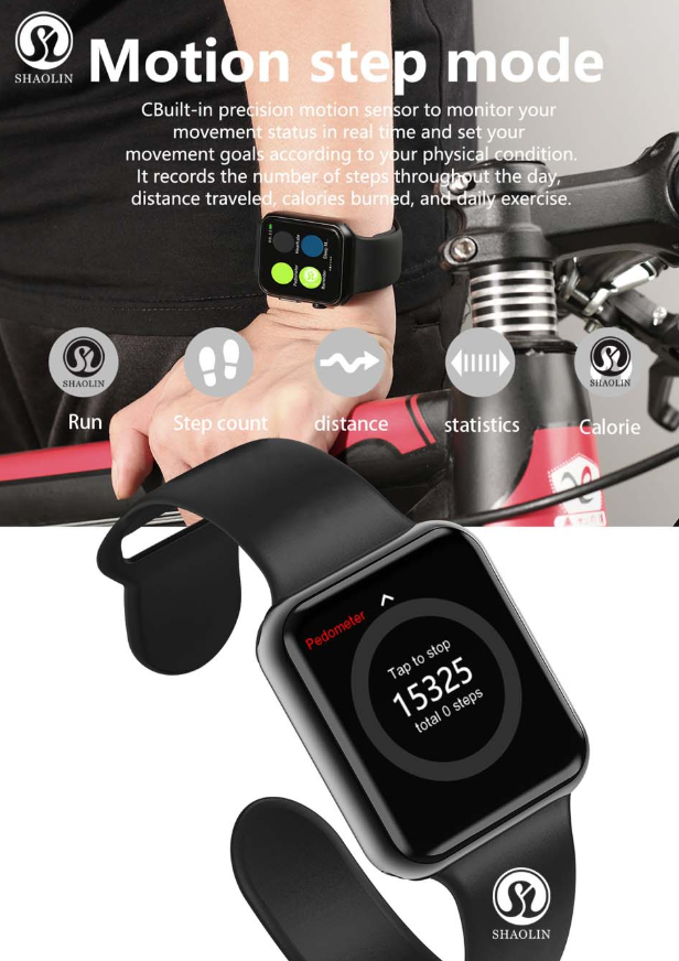 TOP 12 : Fitness Tracker, Step counting . Click to enter into pedometer interface and enter into setting in pressing pedometer for long time,putting the watch on hand agter setting personal detailed information and clicking start,conducting normal arm swing during walk and the pedometer will count steps and work out calorie confumed combining total number of steps