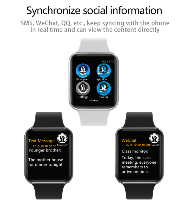 2. SMS Synchronization and reminder, once there is incoming message, the watch can reminder by ring, then you can view the message on the watch directly;
