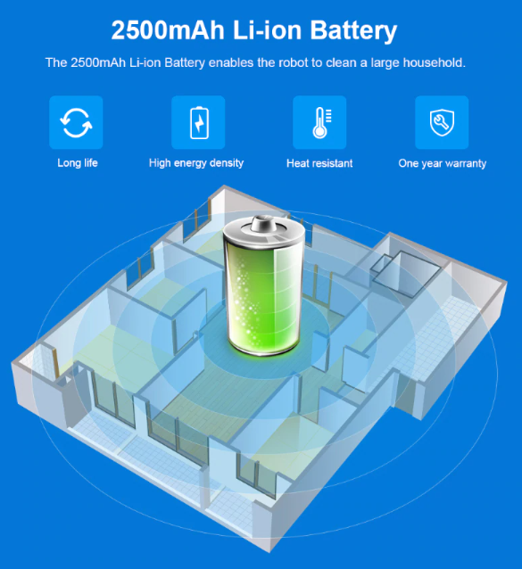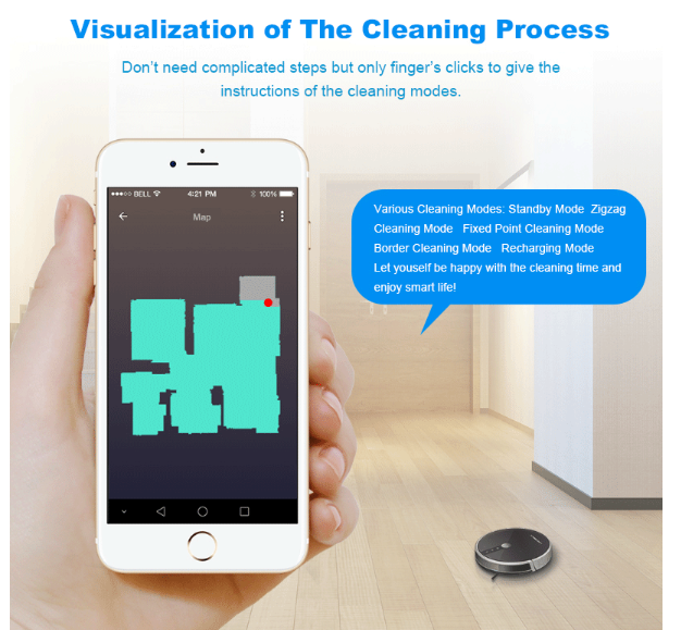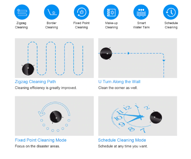 2. The robot is with memory to know where has cleaned while where hasn’t thus one-time sweeping coverage is more than 98%. The cleaning path repetition rate is about 1%.