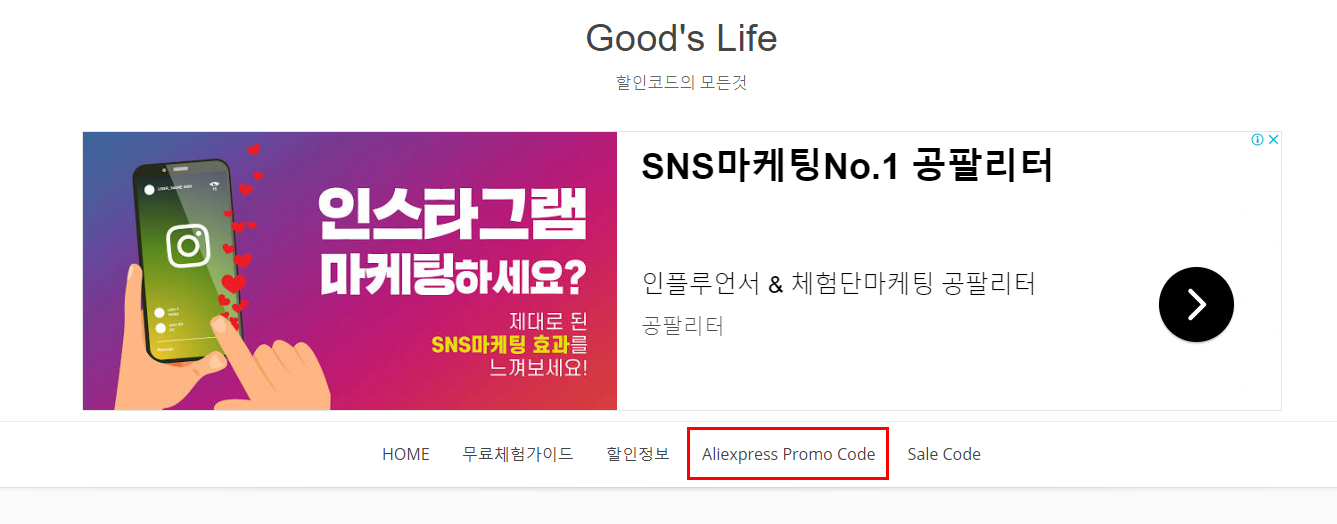 그럼 메뉴에서 Aliexpress Promo Code를 클릭하시면