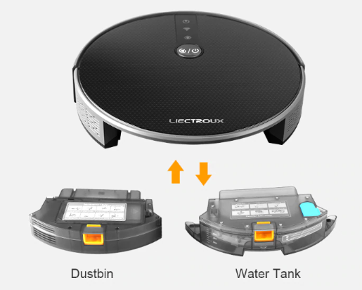 7. The design of interchangeable dustbin and water tank makes robot work more effectively and clean more thoroughly.