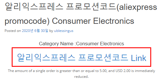 구매하시려는 메뉴를 클릭하시면 알리익스프레스 프로모션코드 Link라는 글을 보실수 있는데