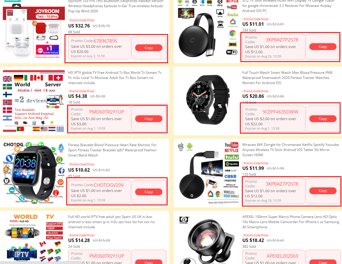 알리익스프레스는 카테고리별, 제품별로 프로모션코드를 배포 하기 때문에