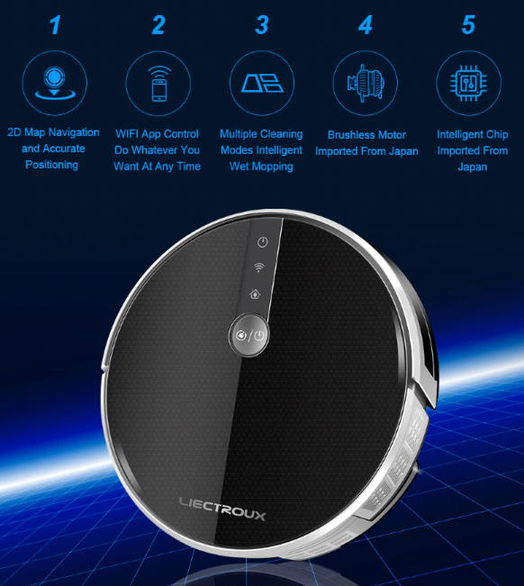 LIECTROUX C30B Robot Vacuum Cleaner,Map navigation,3000Pa Suction, ,Smart Memory, Map Display on Wifi APP, Electric Water tank