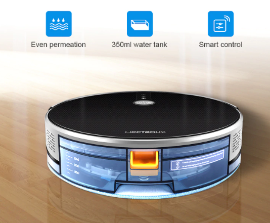 전기 제어 물 탱크는 물이 고르지 않도록합니다. 로봇이 작동을 멈 추면 물이 자동으로 멈 춥니 다. 350ml의 엄청난 양의 물로 최대 100 분 동안 습식 걸레질이 지속됩니다.