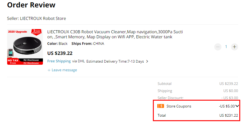 왜냐면 상품 가격이 229달러 이상일 때 쓸수 있는 쿠폰이에요. 그 아래 쿠폰은 10달러 할인이지만 상푸가격이 260달러이상일 경우만 사용할 수가 있어요.