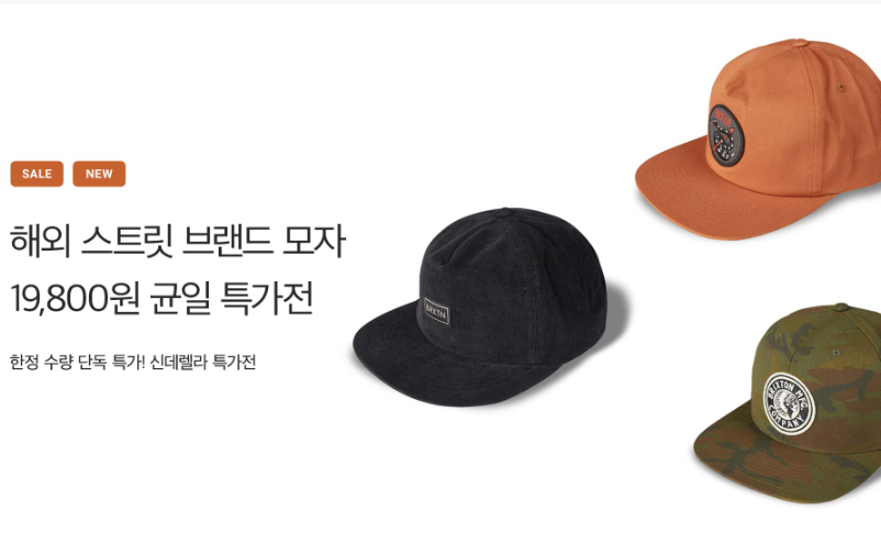 모자는 특정 브랜드만이 아닌 다양한 해외브랜드의 모델을 균일 특가전으로