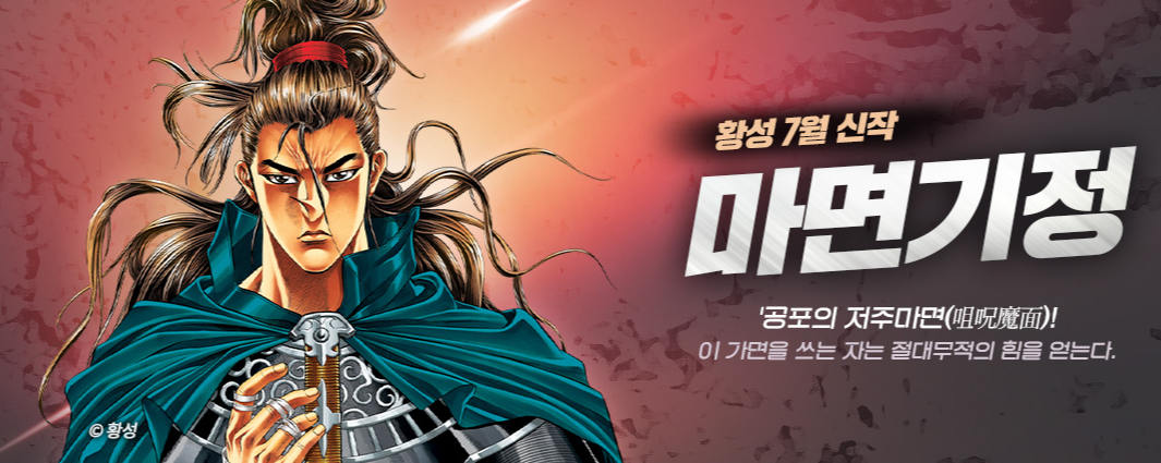 무협글:황성 / 그림:황성공포의 저주마면(咀呪魔面)! 이 가면을 쓰는 자는 절대무적의 힘을 얻는다. 하지만 그 대가로 악마에게 영혼을 바쳐야만 했으니…